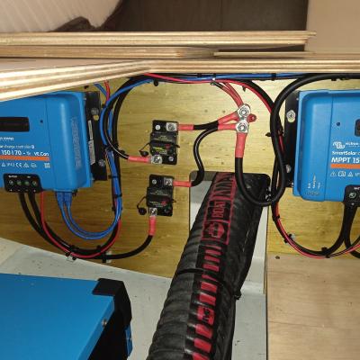 Installation of Victron lithium system. 1200Ah of lithium batteries, 1800 W of solar, Multiplus II 3000 VA inverter/charger and all the other nice things from Victron. Before/after