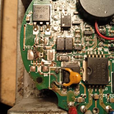 Tracks gets eaten away, and if you don't scrape all the moisture below coating, it will happen again in short time. It is essential to solder the tracks after cleaning that were corroded, and to form new ones for theese that were eaten away. This is ideal repair for begginers, quite easy, but I spent 45 minutes for it. Quick bow thruster control panel.