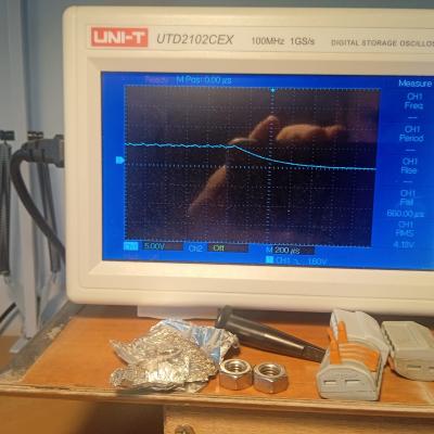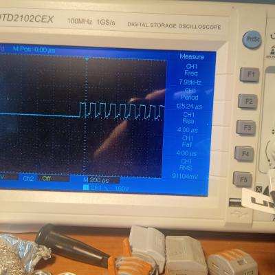 Few Raymarine ST1000+ on repair. Compass problems because of corroded traces that drive fluxgate through transistors. Picture from the scope from fluxgate drive before and after fixing traces.
