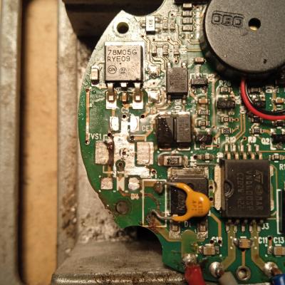 Tracks gets eaten away, and if you don't scrape all the moisture below coating, it will happen again in short time. It is essential to solder the tracks after cleaning that were corroded, and to form new ones for theese that were eaten away. This is ideal repair for begginers, quite easy, but I spent 45 minutes for it. Quick bow thruster control panel.