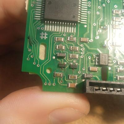 Few Raymarine ST1000+ on repair. Compass problems because of corroded traces that drive fluxgate through transistors. Picture from the scope from fluxgate drive before and after fixing traces.